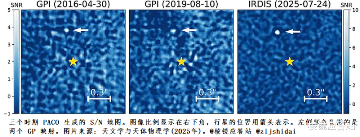 发现背后的数据考古 西北大学研究生娜塔莉·琼斯,去年夏天,重新梳理双子座南望远镜GeminiPlanetImager(GPI)的十年旧档。在2016至2019年图像中,一个微弱点,随HD143811AB双星移动,角距仅430毫角秒。 她运用先进的后处理算法,剥离星光干扰,确认这,便是绑定的伴星。 KeckNIRC2在2022年开展工作,经共同运动分析后,确定轨道:半长轴是64^{+32}_{-14} AU天文单位,偏心率为0.23,公转时长有320年。 埃克塞特大学欧洲团队,独立复现,利用SPHERE数据,得出相似轨道周期,320^{+250}{-90}年。双星间距极近,仅0.15AU,远小于太阳系内行星带。这颗13百万年的年轻巨行星,(恐龙灭绝后仅5000万年),质量5.6±1.1木星质量(MJup),有效温度1042^{+178}{-132} K。